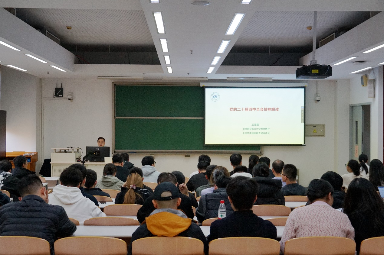 王教授立足战略高度,围绕“十五五”时期经济社会发展的指导思想和原则;加快高水平科技自立自强,引领发展新质生产力;建设强大国内市场,加快构建新发展格局;扩大高水平对外开放,开创合作共赢新局面;推进国家安全体系和能力现代化,建设高水平平安中国;加强党中央集中统一领导,推进领导干部能上能下常态化六个方面,对党的二十届四中全会精神进行系统阐释,并结合具体案例展开深入解读。党课内容详实、生动鲜活,不仅助力师生全面深入学习领会全会精神,更引导师生以“两个维护”为根本筑牢信仰根基、以“国之大者”为坐标锚定科技报国方向;以“知行合一”为准则践行实干初心。