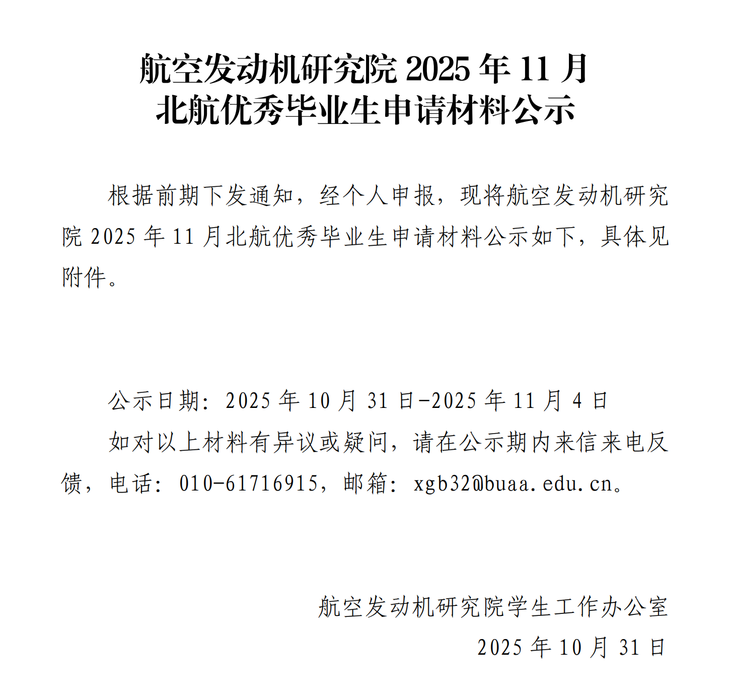 williamhill威廉希尔2025年11月北航优秀毕业生申请材料公示