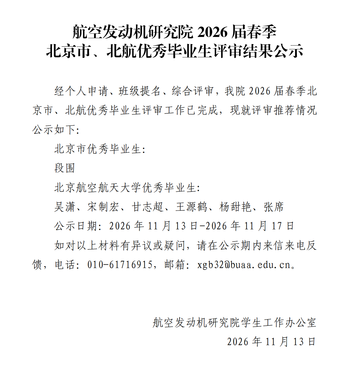 williamhill威廉希尔2026届春季北京市、北航优秀毕业生评审结果公示